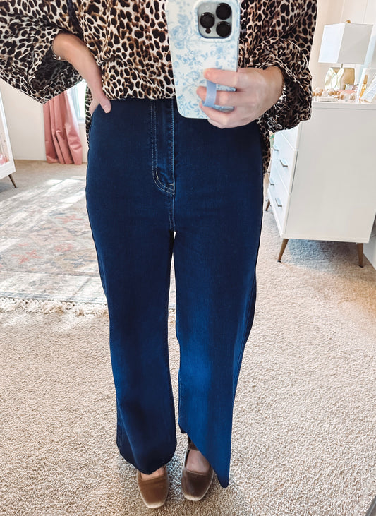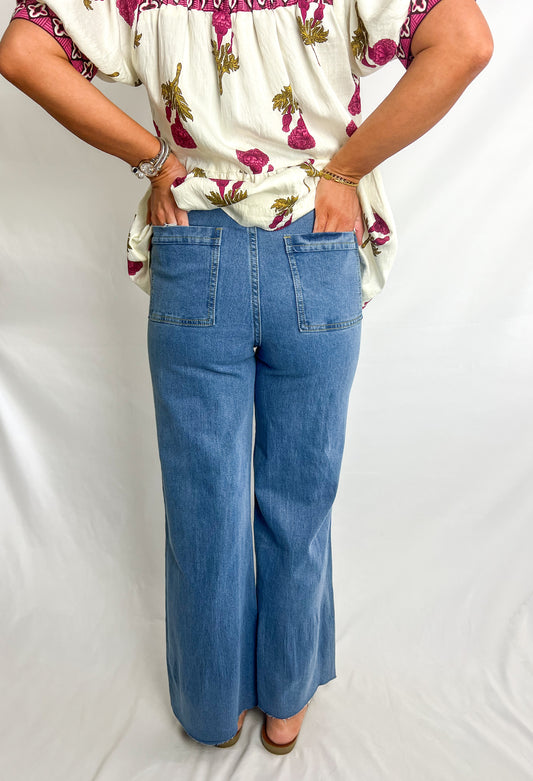 High Rise Wide Leg Denim Jeans-Medium Wash
