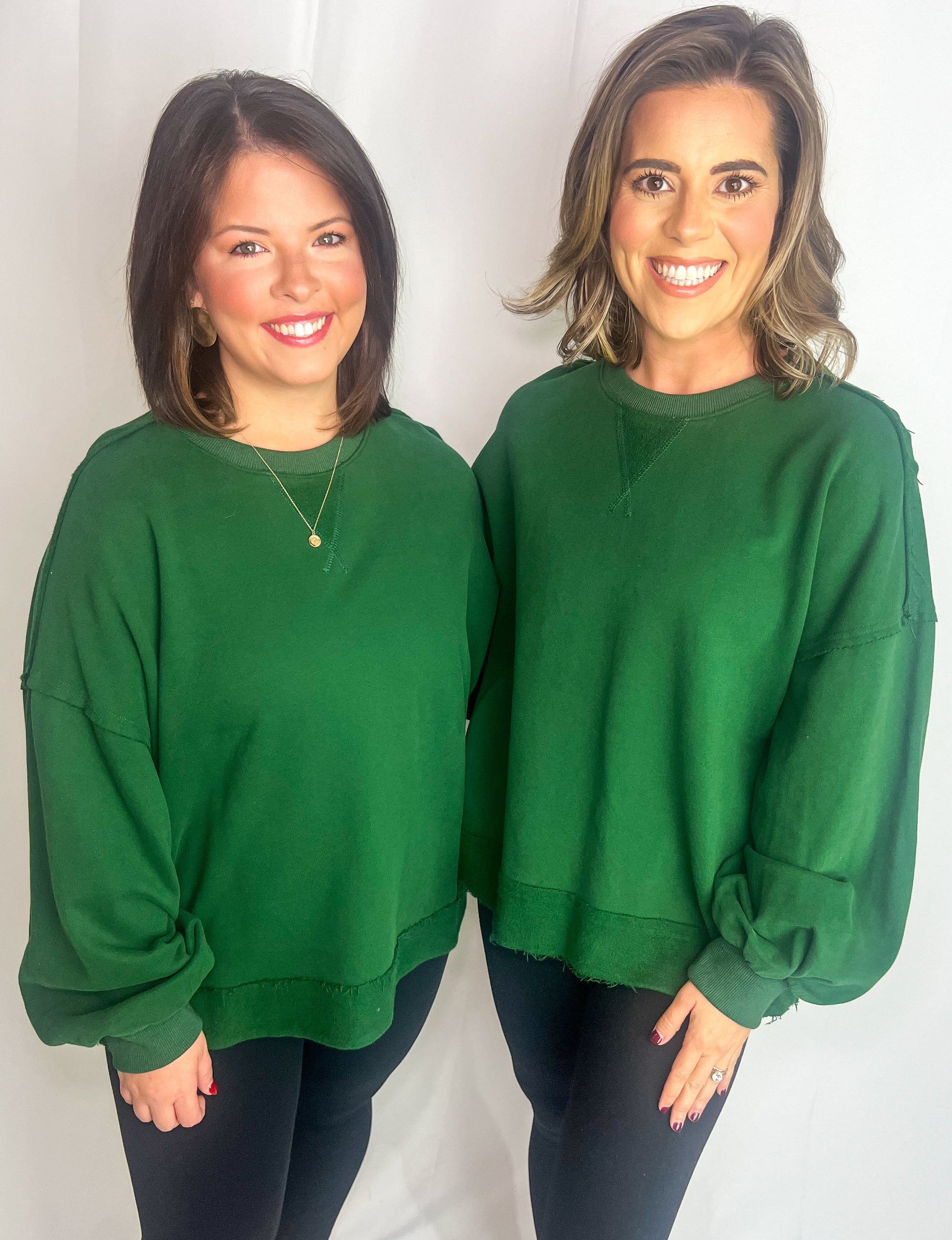Haley is wearing small & Chloe is wearing medium