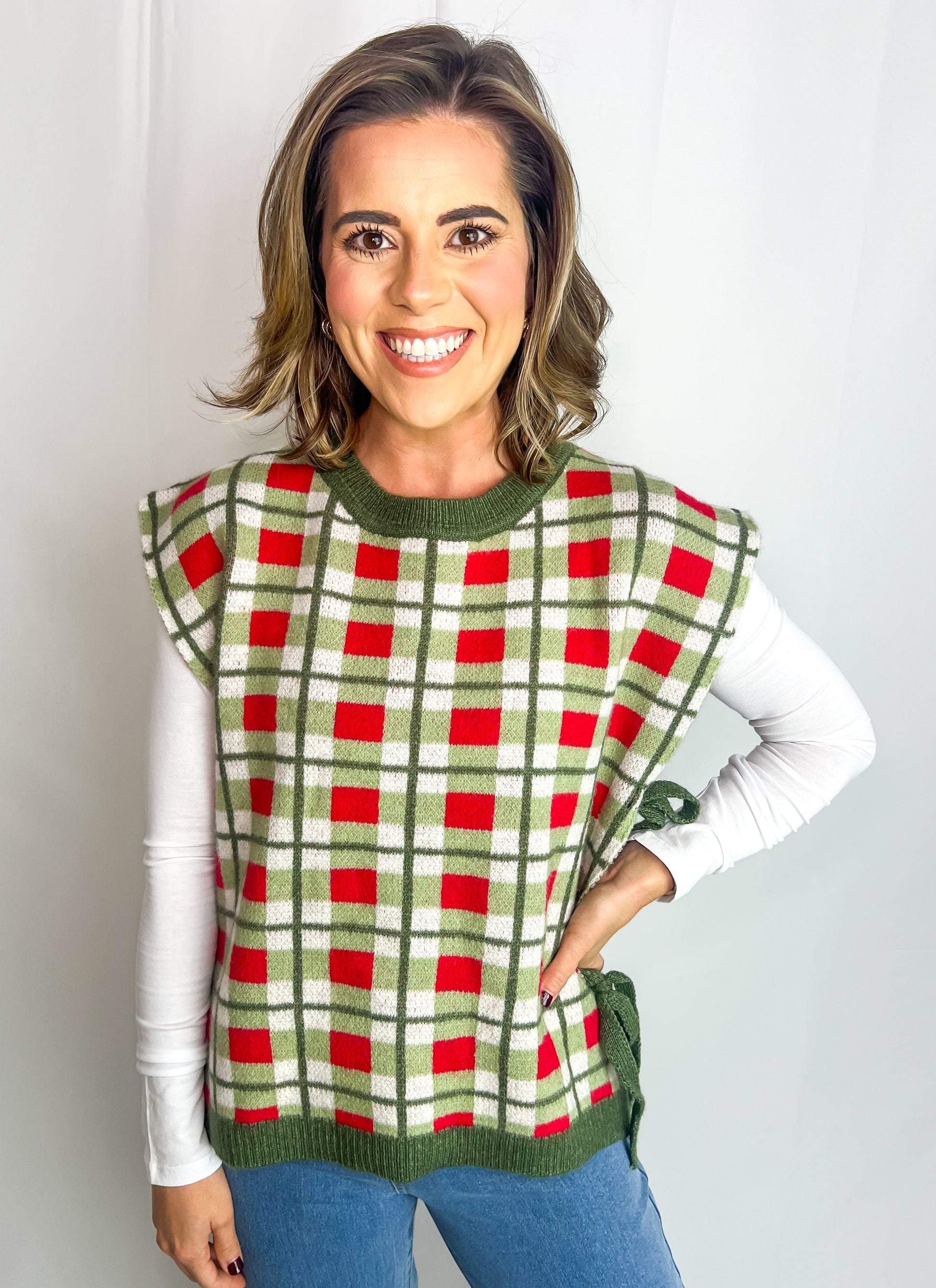 Haley is wearing small & Chloe is wearing large!